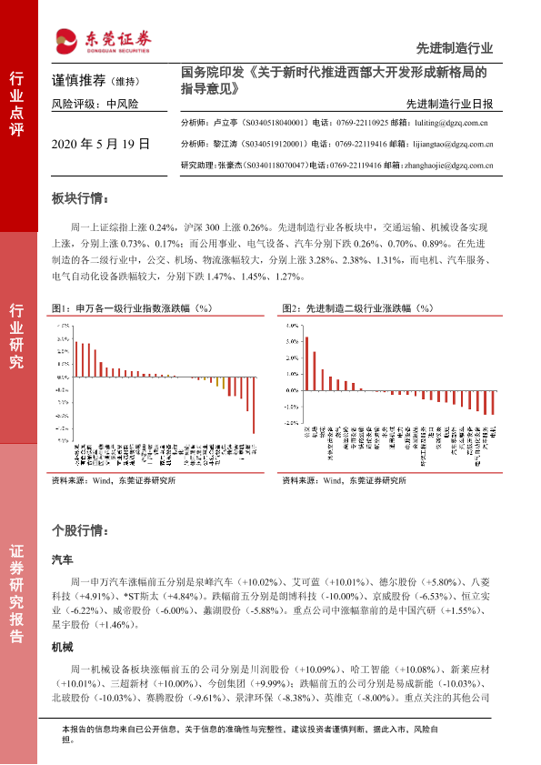 【东莞证券】【20200519】20200519-东莞证券-先进制造行业日报:国务院印发《关于新时代推进西部大开发形成新格局的指导意见》-4页