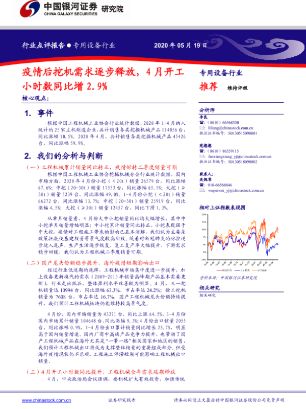 【银河证券】【20200519】专用设备行业点评报告:疫情后挖机需求逐步释放,4月开工小时数同比增2.9%-4页