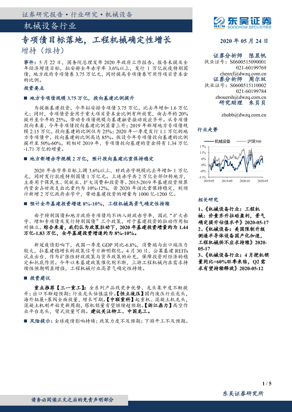 【东吴证券】【20200524】机械设备行业:专项债目标落地,工程机械确定性增长-5页