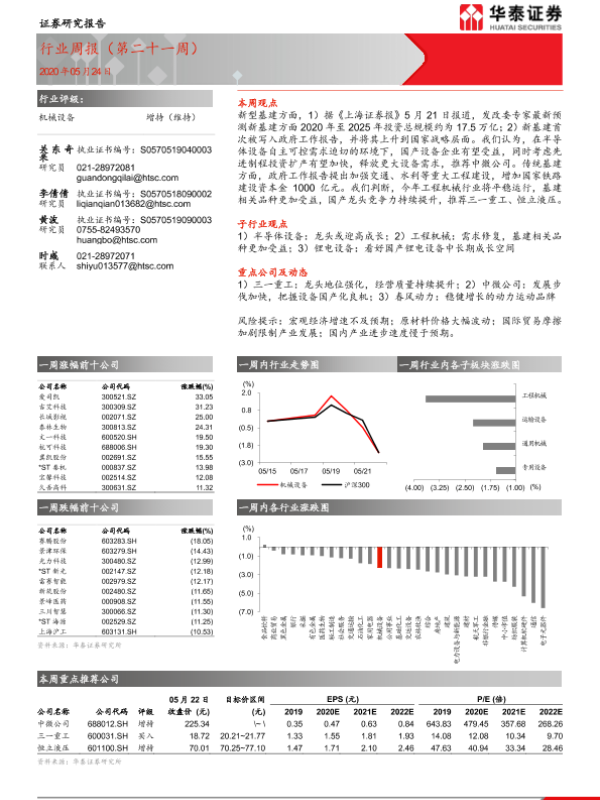 【华泰证券】【20200524】20200524-华泰证券-机械设备行业周报(第二十一周)-13页