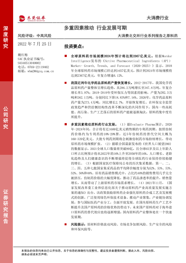 【东莞证券】【20220725】大消费行业北交所行业系列报告之原料药:多重因素推动,行业发展可期-17页