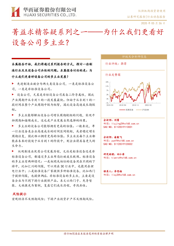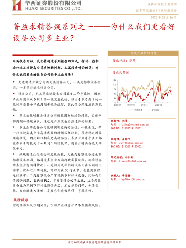 【华西证券】【20200526】菁益求精答疑系列之一——为什么我们更看好设备公司多主业?-12页