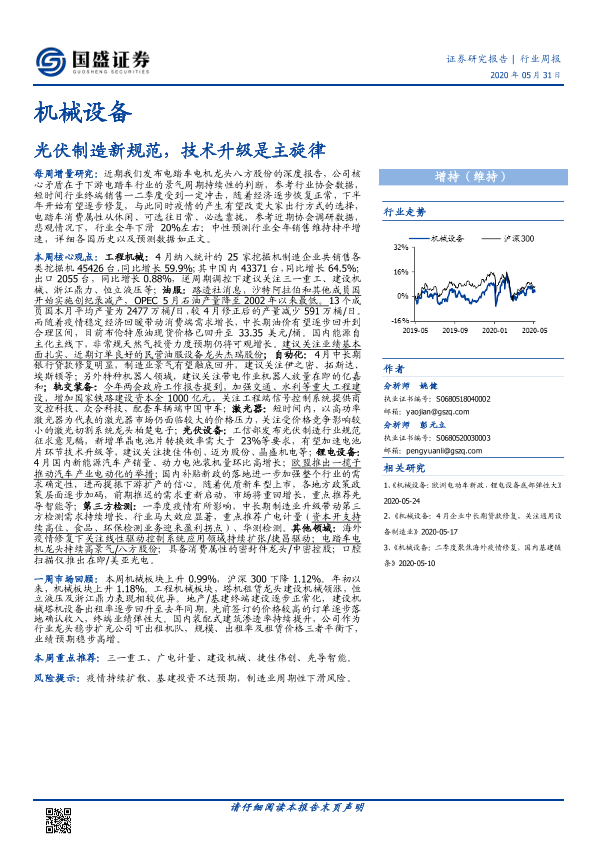 【国盛证券】【20200531】机械设备行业周报:光伏制造新规范,技术升级是主旋律-12页