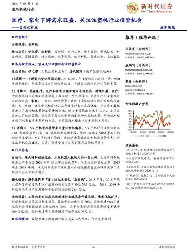 【新时代证券】【20200531】自动化行业:医疗、家电下游需求旺盛,关注注塑机行业投资机会-14页