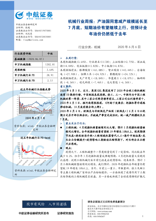 【中航证券】【20200606】20200606-中航证券-机械行业周报:产油国同意减产规模延长至7月底,短期油价有望继续上行,但预计全年油价仍然低于去年-6页