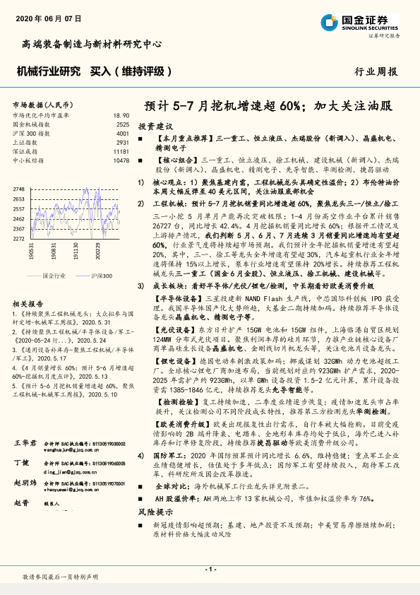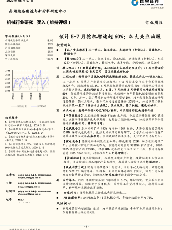 【国金证券】【20200607】20200607-国金证券-机械行业研究:预计5-7月挖机增速超60%;加大关注油服-25页