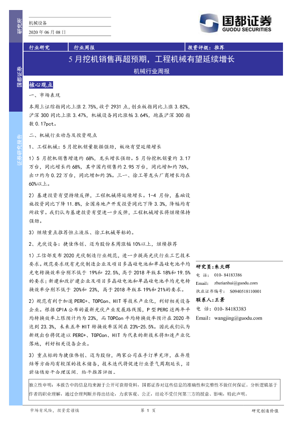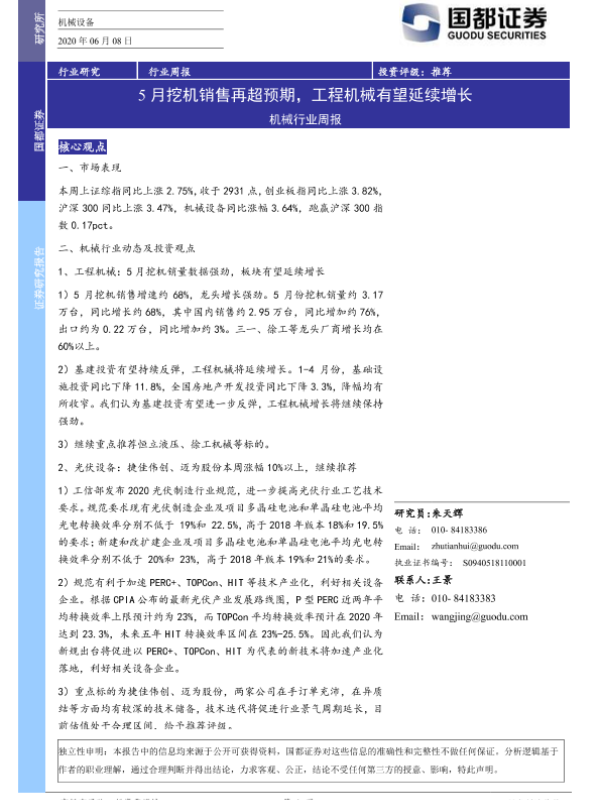 【国都证券】【20200608】20200608-国都证券-机械行业周报:5月挖机销售再超预期,工程机械有望延续增长-3页