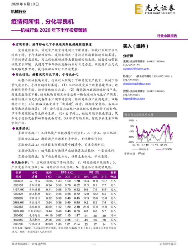 【光大证券】【20200610】机械行业2020年下半年投资策略:疫情何所惧,分化寻良机-52页