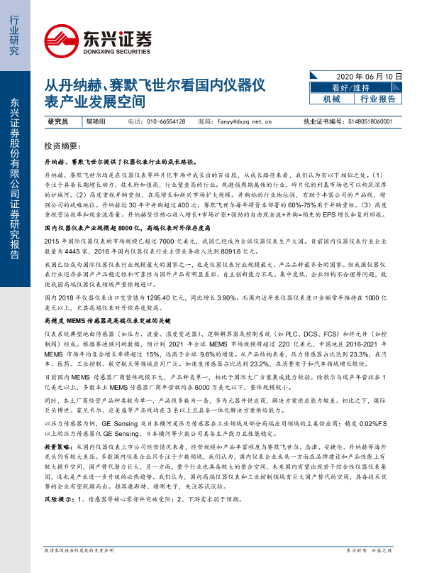 【东兴证券】【20200610】从丹纳赫、赛默飞世尔看国内仪器仪表产业发展空间-22页