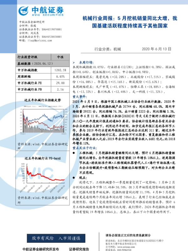 【中航证券】【20200613】20200613-中航证券-机械行业周报:5月挖机销量同比大增,我国基建活跃程度持续高于其他国家-6页