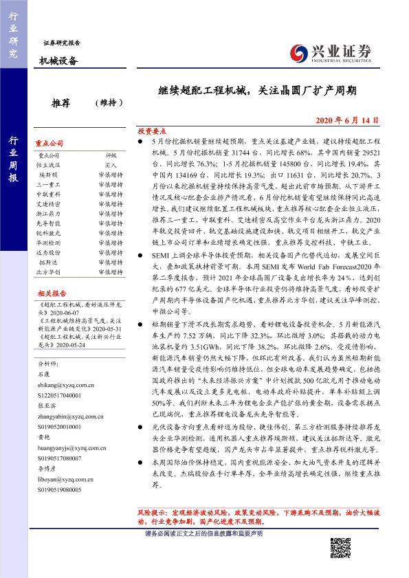 【兴业证券】【20200614】继续超配工程机械,关注晶圆厂扩产周期-19页