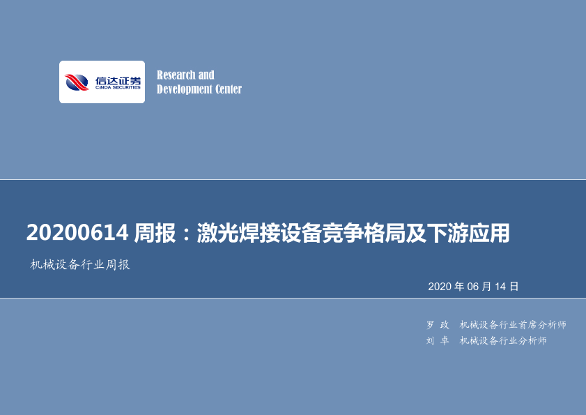 【信达证券】【20200614】20200614-信达证券-机械设备行业周报:激光焊接设备竞争格局及下游应用-18页