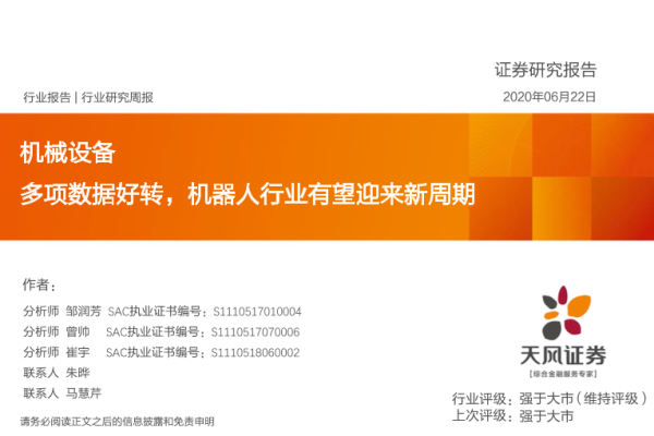 【天风证券】【20200622】20200622-天风证券-机械设备行业研究周报:多项数据好转,机器人行业有望迎来新周期-12页