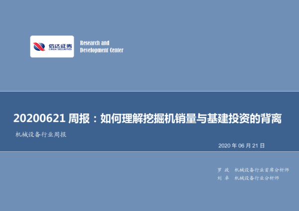 【信达证券】【20200621】20200621-信达证券-机械设备行业周报:如何理解挖掘机销量与基建投资的背离-13页
