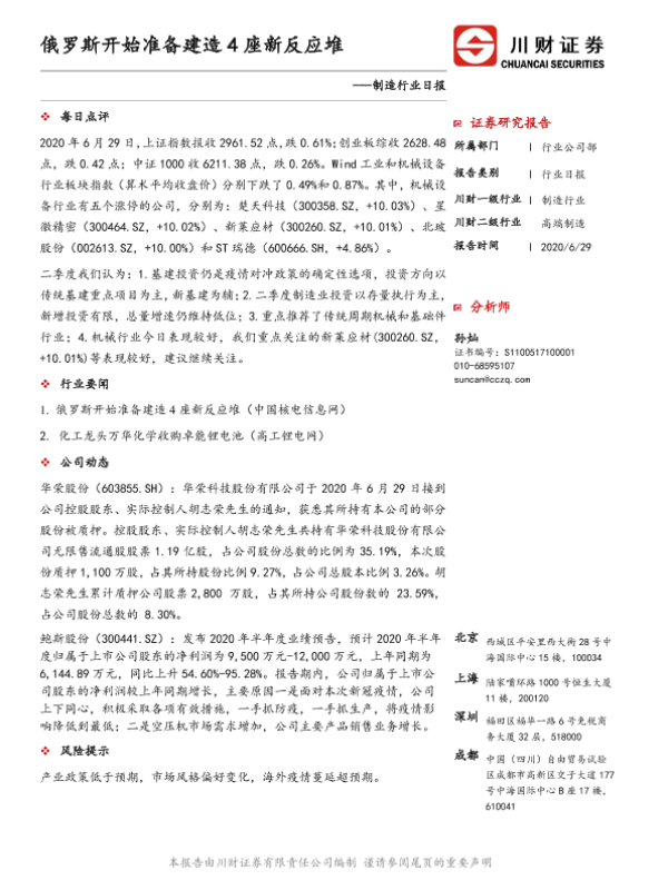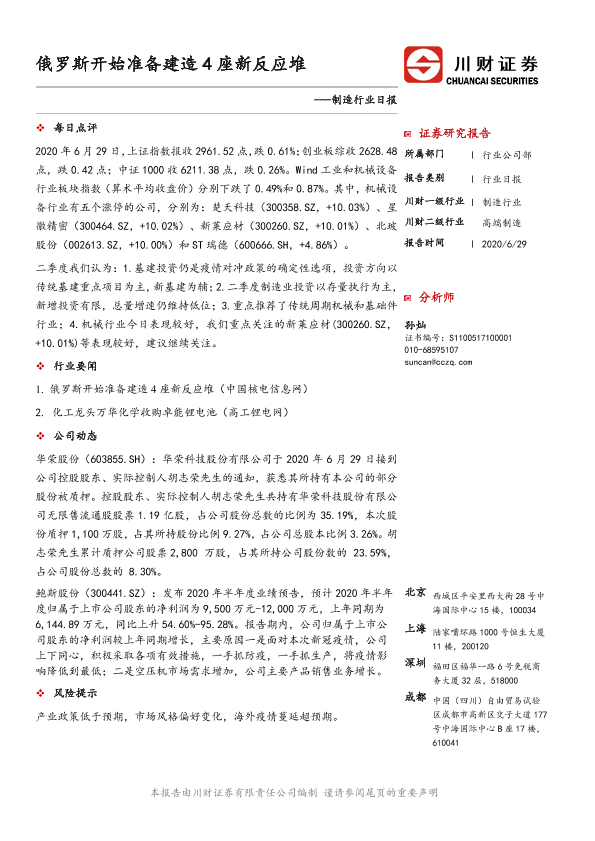【川财证券】【20200629】制造行业日报:俄罗斯开始准备建造4座新反应堆-2页