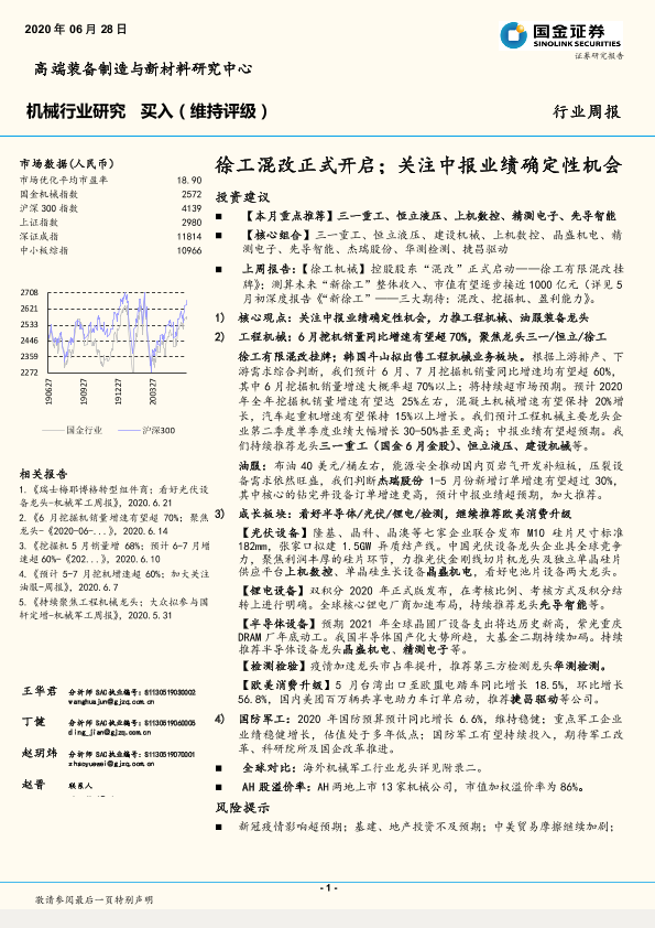【国金证券】【20200628】20200628-国金证券-机械行业研究:徐工混改正式开启;关注中报业绩确定性机会-23页