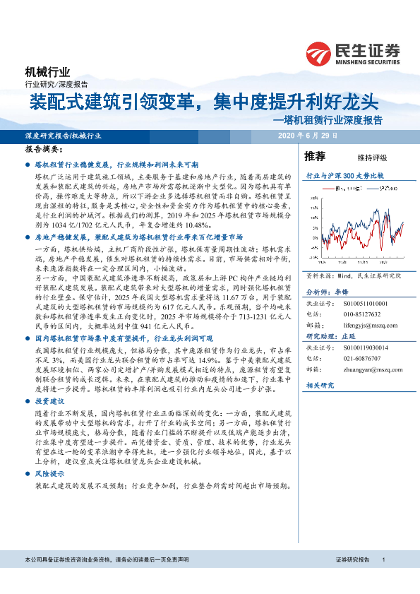 【民生证券】【20200629】20200629-民生证券-塔机租赁行业深度报告:装配式建筑引领变革,集中度提升利好龙头-31页