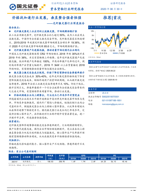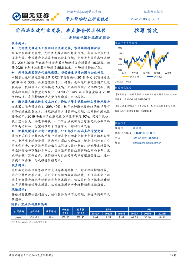 【国元证券】【20200630】价格战加速行业发展,垂直整合强者恒强——光纤激光器行业深度报告-33页
