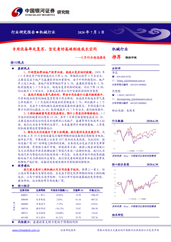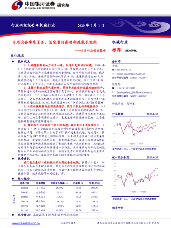 【银河证券】【20200701】20200701-中国银河-机械行业:6月行业动态报告:专用设备率先复苏,坚定看好高端制造成长空间-29页