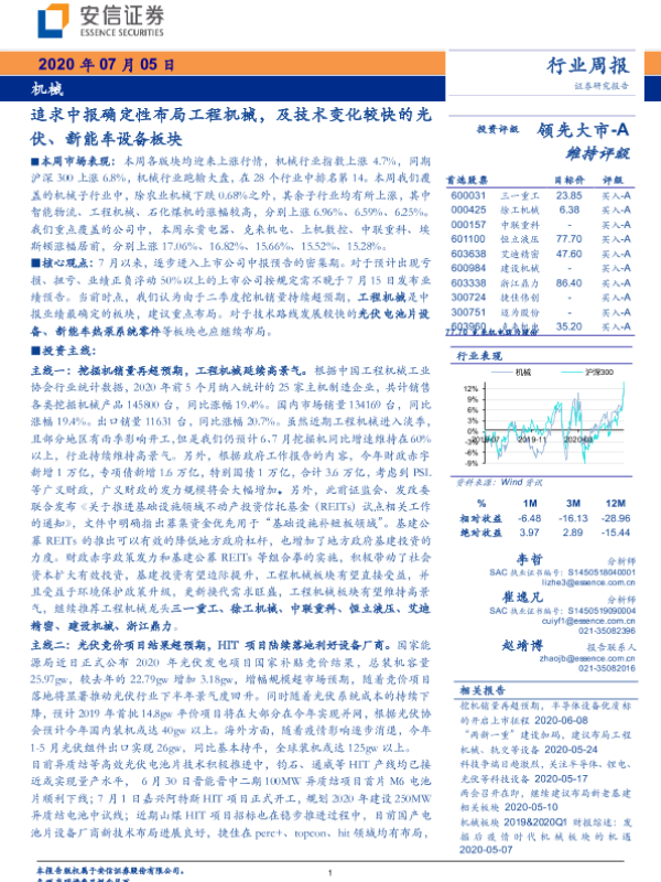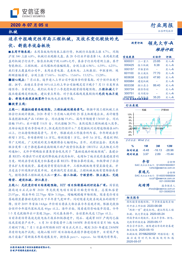 【安信证券】【20200705】20200705-安信证券-机械行业周报:追求中报确定性布局工程机械,及技术变化较快的光伏、新能车设备板块-20页