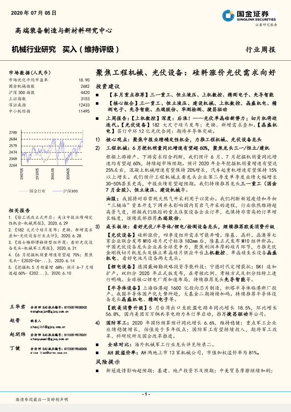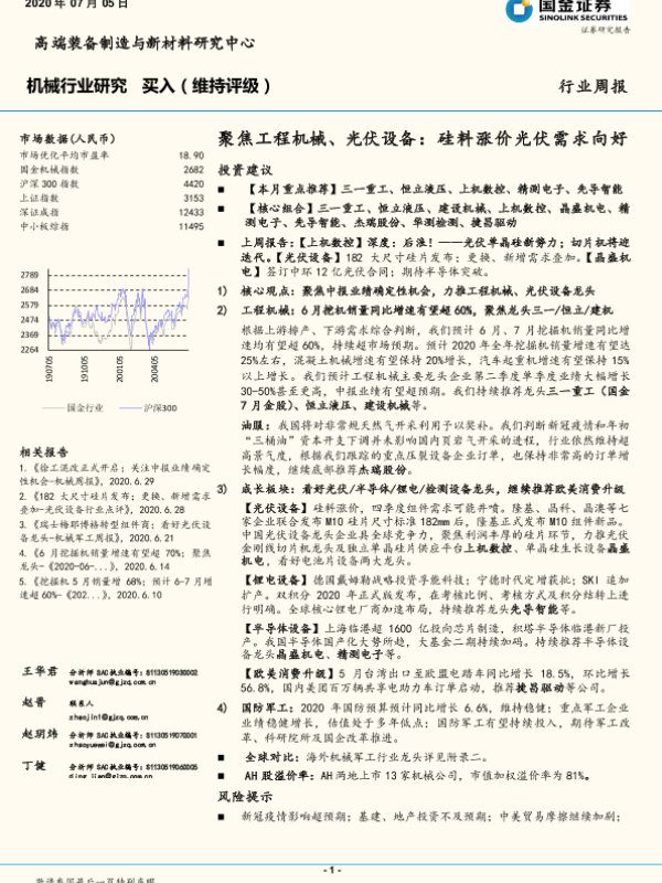 【国金证券】【20200705】20200705-国金证券-机械行业研究:聚焦工程机械、光伏设备: 硅料涨价光伏需求向好-24页