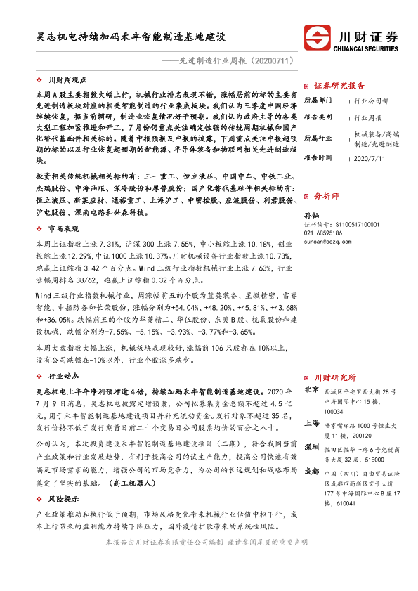 【川财证券】【20200711】先进制造行业周报:昊志机电持续加码禾丰智能制造基地建设-9页