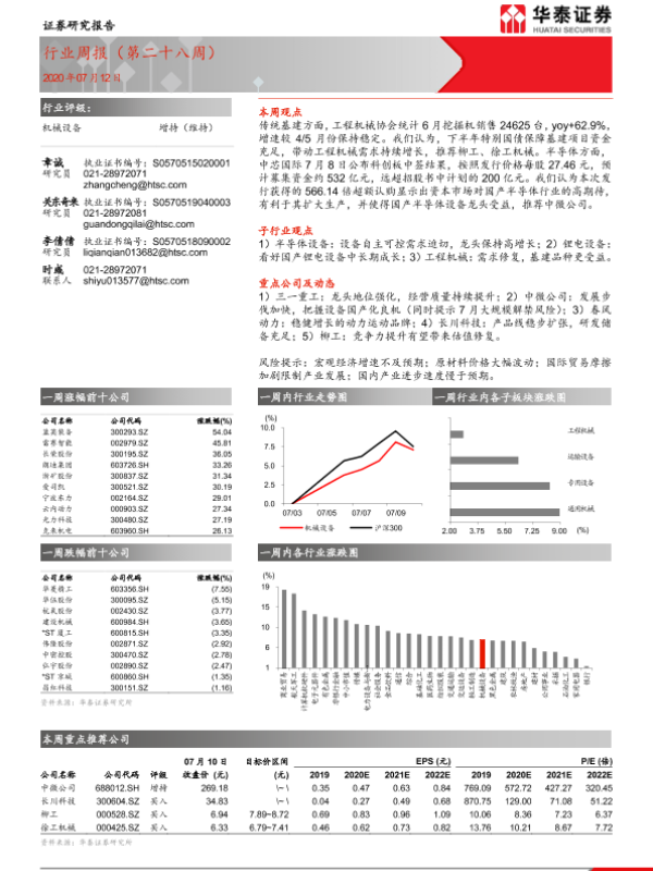 【华泰证券】【20200712】20200712-华泰证券-机械设备行业周报(第二十八周)-11页
