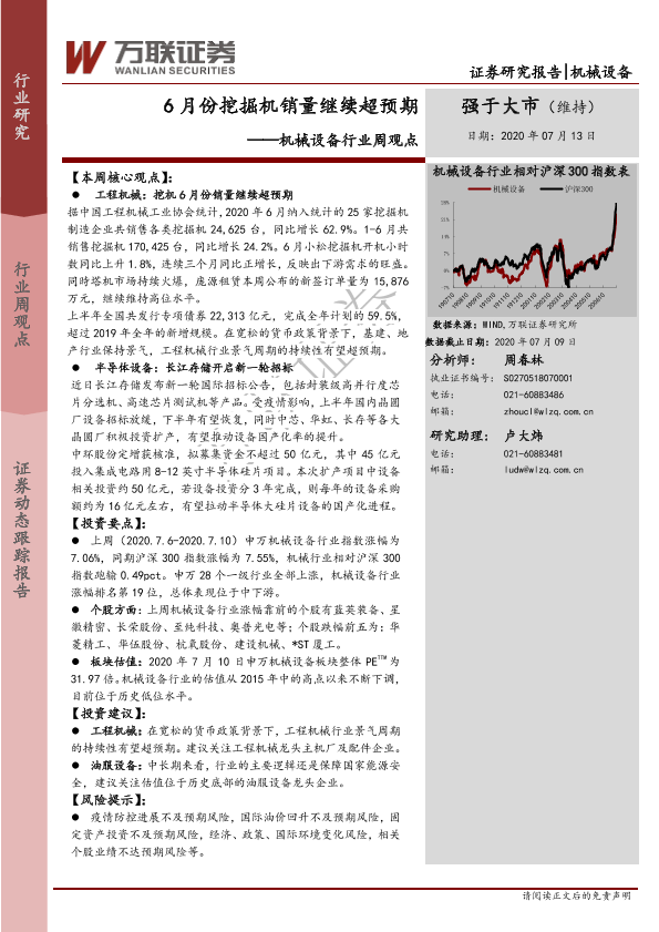 【万联证券】【20200713】20200713-万联证券-机械设备行业周观点:6月份挖掘机销量继续超预期-9页