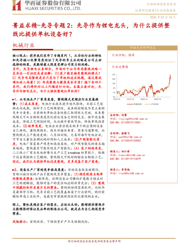 【华西证券】【20200714】菁益求精-先导专题2:先导作为锂电龙头,为什么提供整线比提供单机设备好?-13页