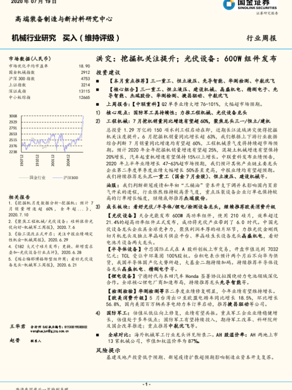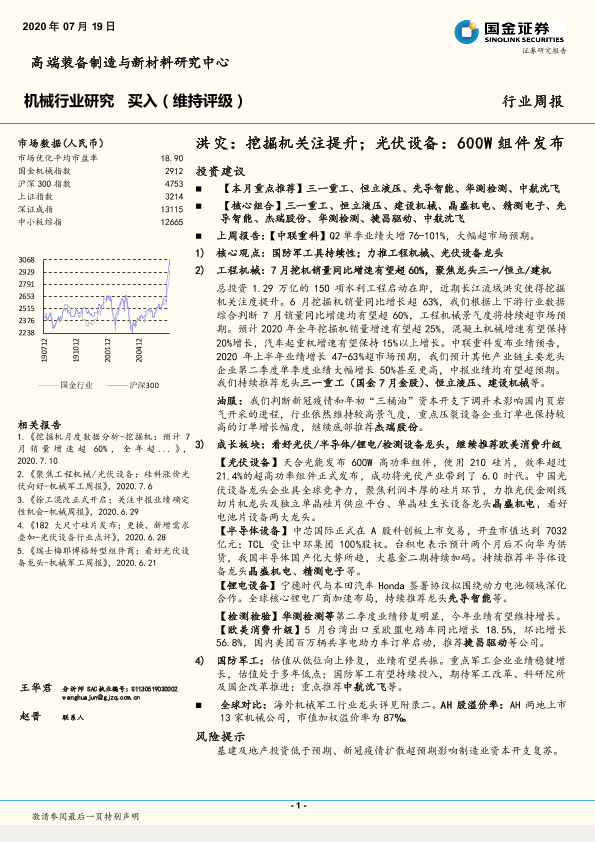 【国金证券】【20200719】机械行业研究:洪灾:挖掘机关注提升;光伏设备:600W组件发布-23页