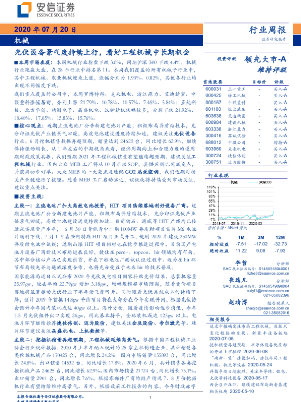 【安信证券】【20200720】20200720-安信证券-机械行业周报:光伏设备景气度持续上行,看好工程机械中长期机会-21页