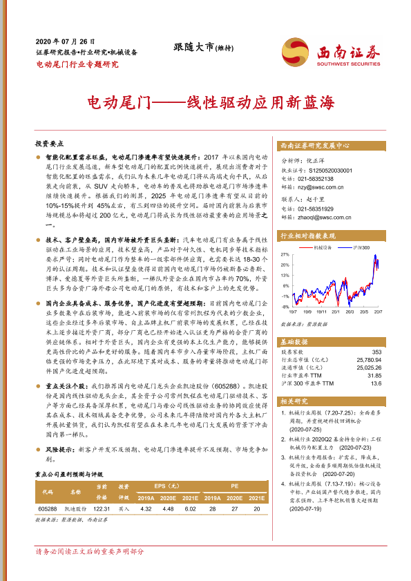 【西南证券】【20200726】电动尾门行业专题研究:电动尾门——线性驱动应用新蓝海-12页
