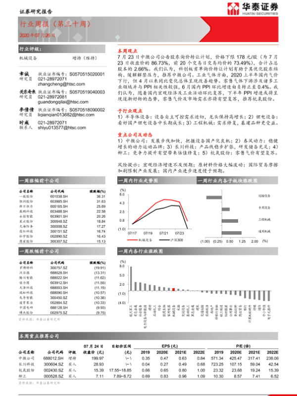【华泰证券】【20200726】20200726-华泰证券-机械设备行业周报(第三十周)-10页