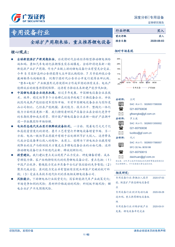【广发证券】【20200803】专用设备行业:全球扩产周期来临,重点推荐锂电设备-62页