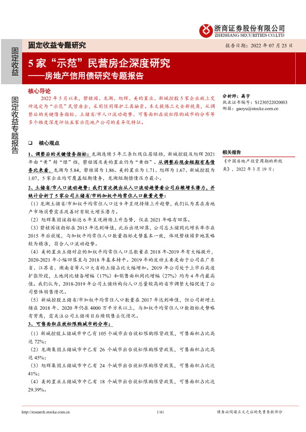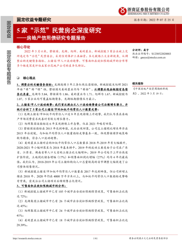 【浙商证券】【20220725】房地产信用债研究专题报告:5家“示范”民营房企深度研究-41页