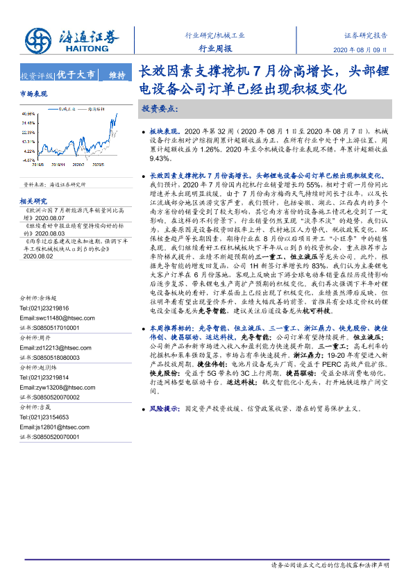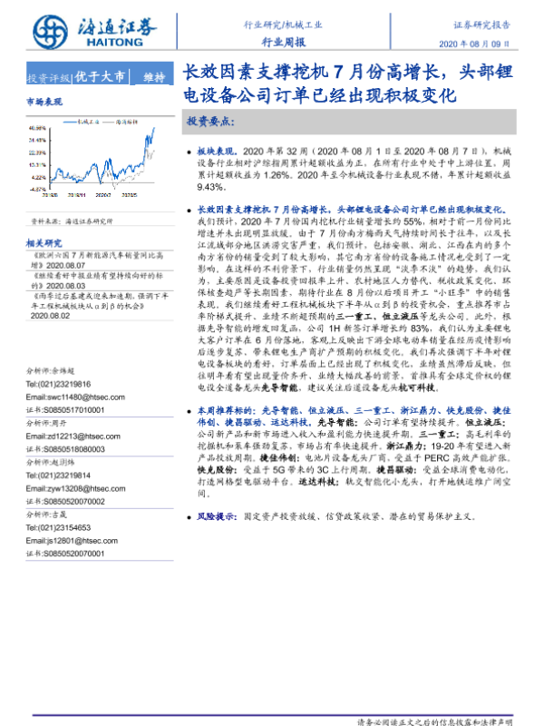 【海通证券】【20200809】20200809-海通证券-机械工业行业周报:长效因素支撑挖机7月份高增长,头部锂电设备公司订单已经出现积极变化-10页