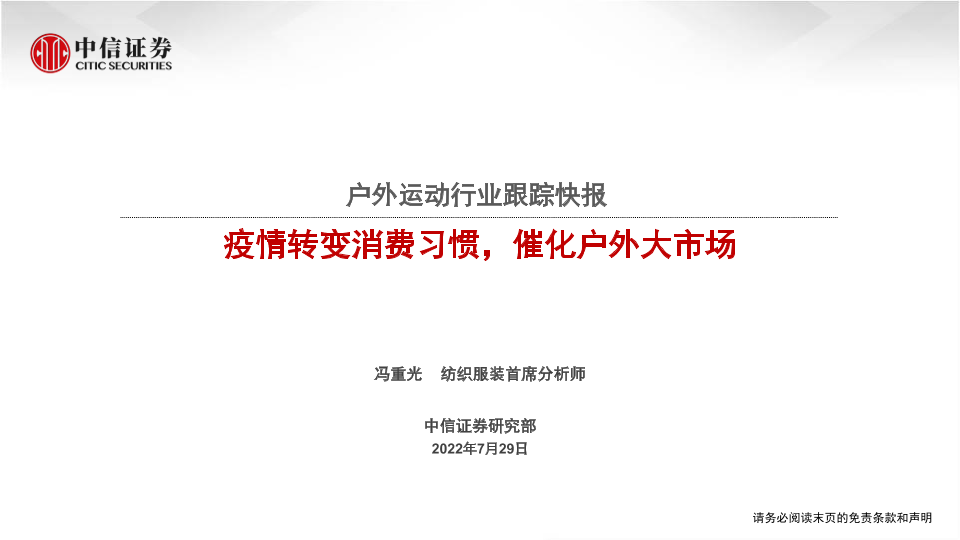 【中信证券】【20220729】户外运动行业跟踪快报:疫情转变消费习惯,催化户外大市场-26页