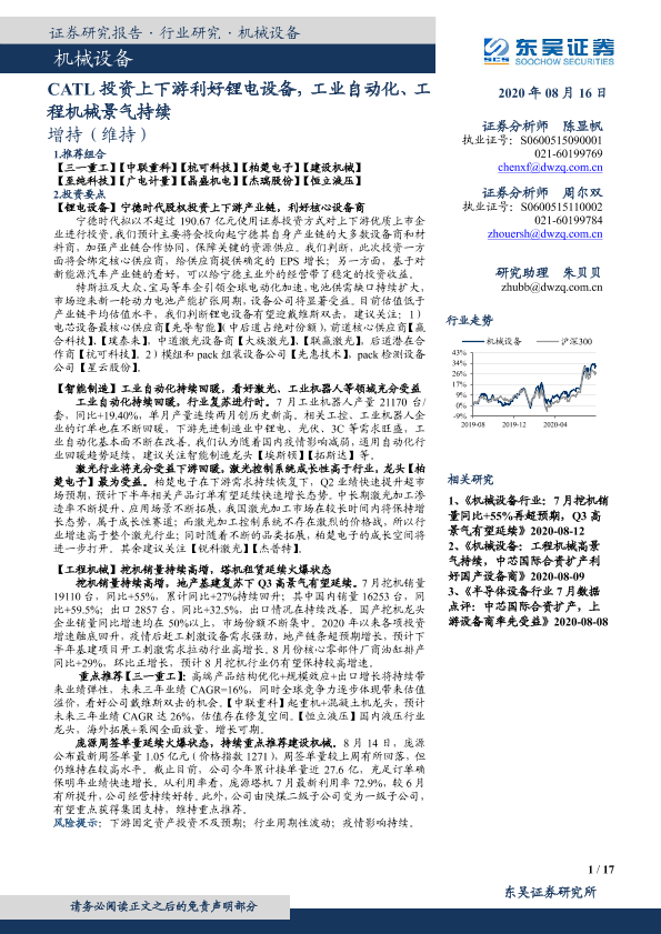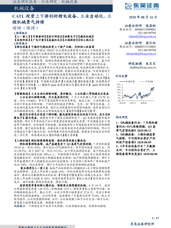 【东吴证券】【20200816】机械设备:CATL投资上下游利好锂电设备,工业自动化、工程机械景气持续-17页