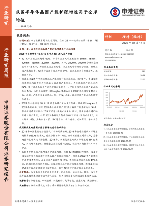 【申港证券】【20200817】20200817-申港证券-机械设备行业研究周报:我国半导体晶圆产能扩张增速高于全球均值-16页