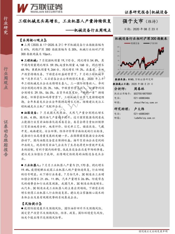【万联证券】【20200823】20200823-万联证券-机械设备行业周观点:工程机械龙头高增长,工业机器人产量持续恢复-12页