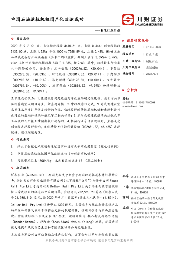 【川财证券】【20200901】制造行业日报:中国石油造粒机组国产化改造成功-3页