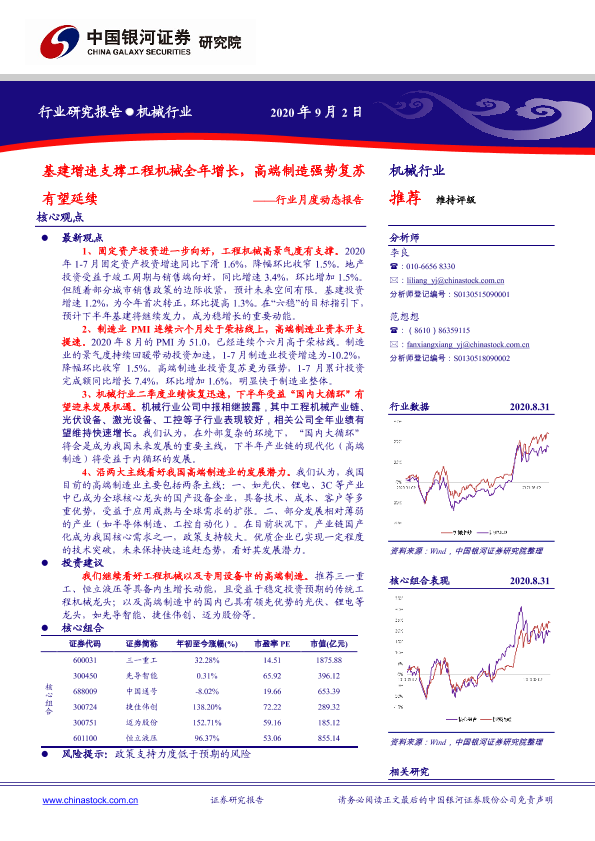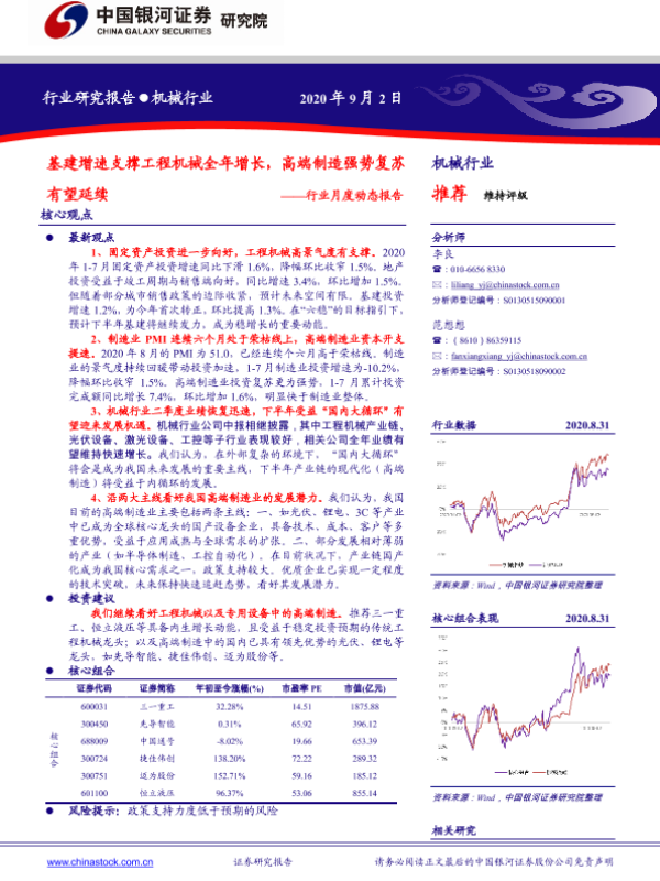 【银河证券】【20200902】20200902-中国银河-机械行业月度动态报告:基建增速支撑工程机械全年增长,高端制造强势复苏有望延续-33页
