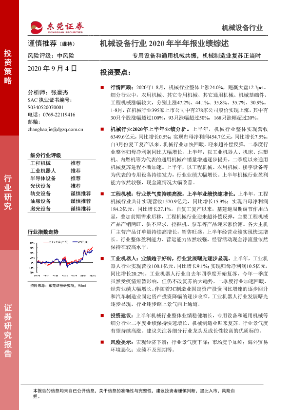 【东莞证券】【20200904】机械行业2020年半年报业绩综述:专用设备和通用机械共振,机械制造业复苏正当时-17页