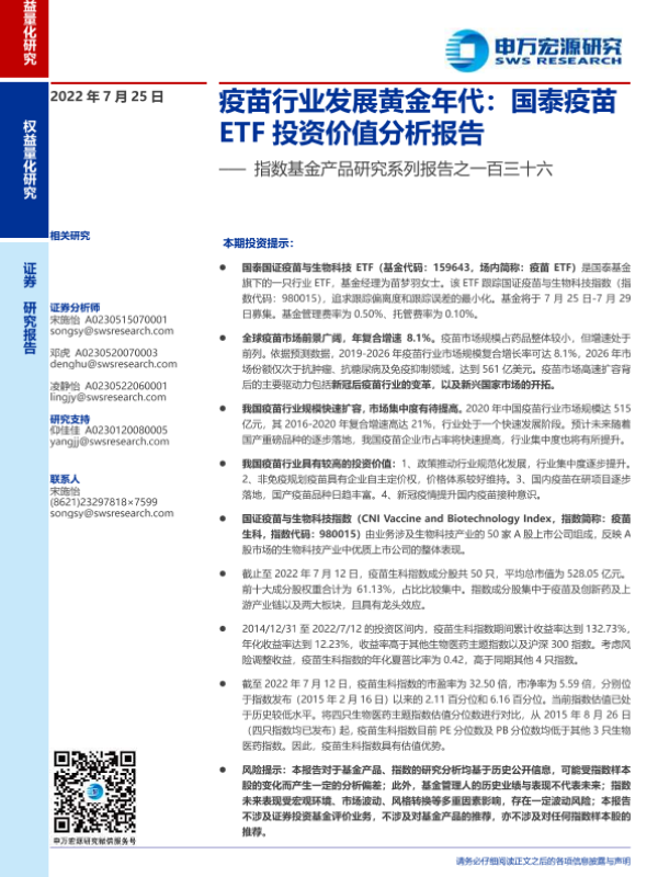 【申万宏源】【20220725】指数基金产品研究系列报告之一百三十六:疫苗行业发展黄金年代,国泰疫苗ETF投资价值分析报告-20页