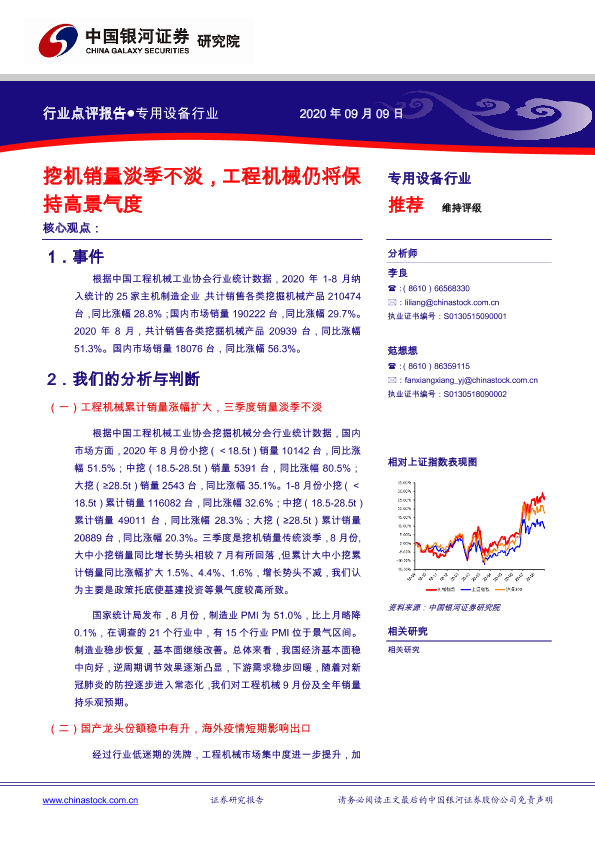 【银河证券】【20200909】专用设备行业:挖机销量淡季不淡,工程机械仍将保持高景气度-8页