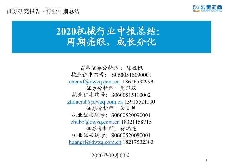 【东吴证券】【20200909】2020机械行业中报总结:周期亮眼,成长分化-65页