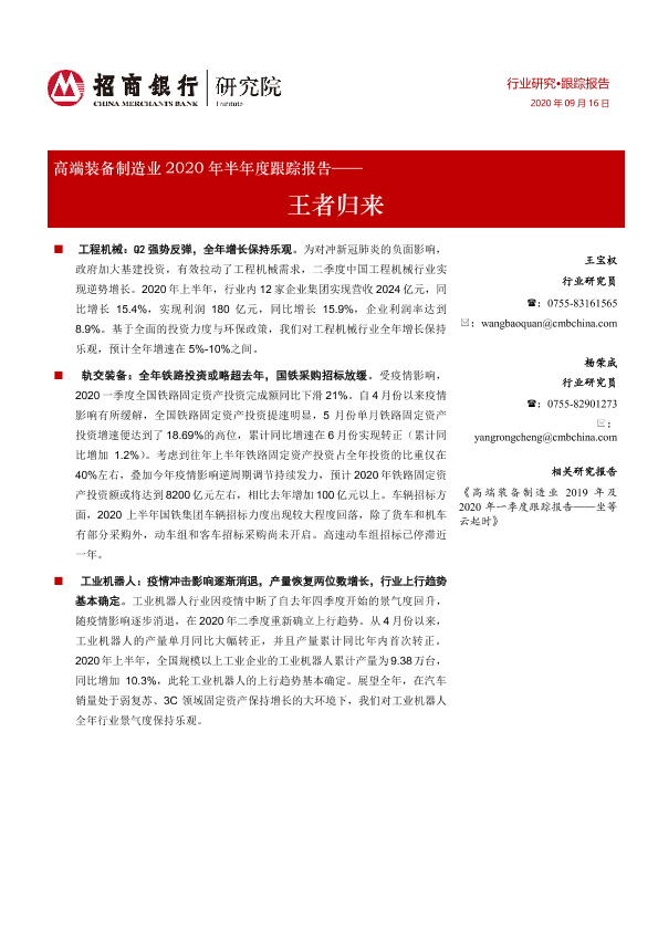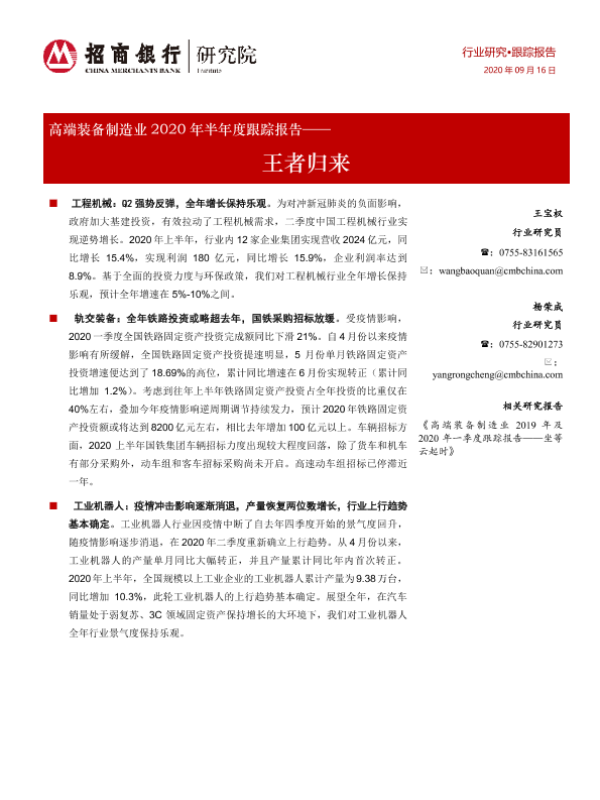 【招商银行】【20200916】高端装备制造业2020年半年度跟踪报告:王者归来-17页