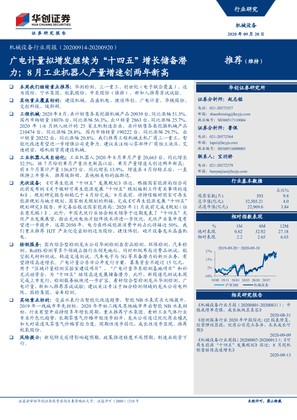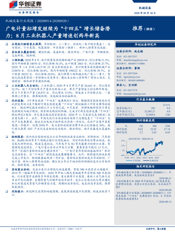 【华创证券】【20200920】机械设备行业周报:广电计量拟增发继续为“十四五”增长储备潜力;8月工业机器人产量增速创两年新高-10页