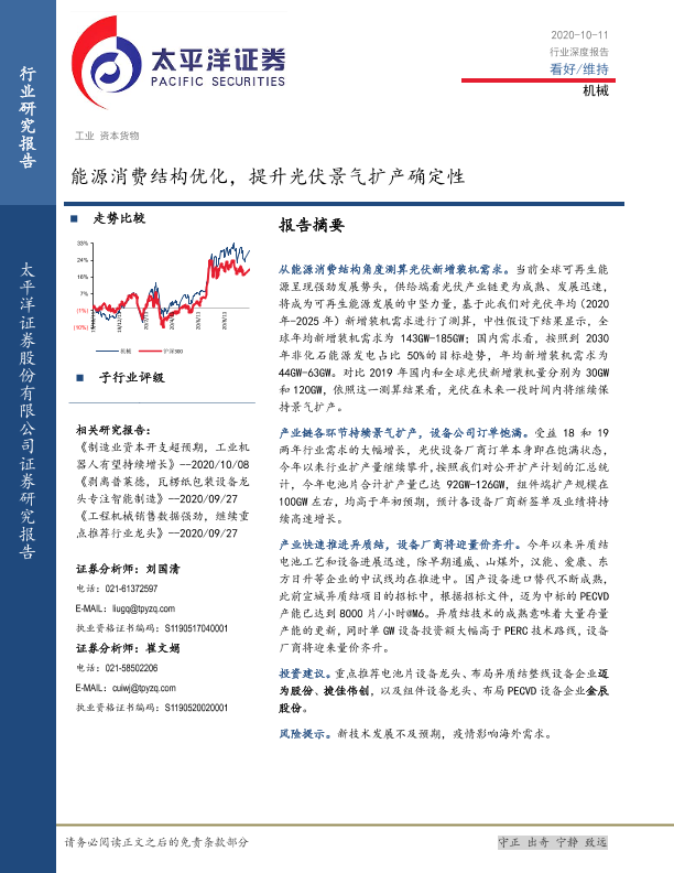 【太平洋证券】【20201011】机械行业深度报告:能源消费结构优化,提升光伏景气扩产确定性-9页