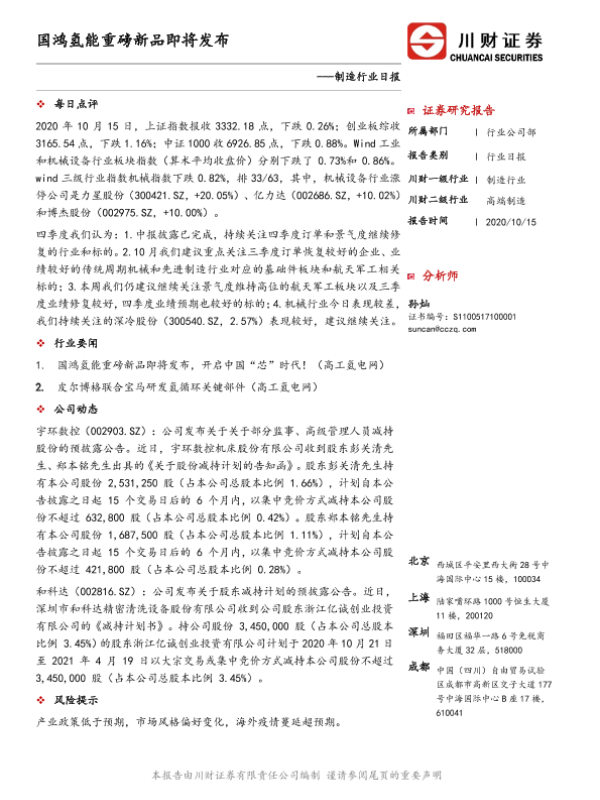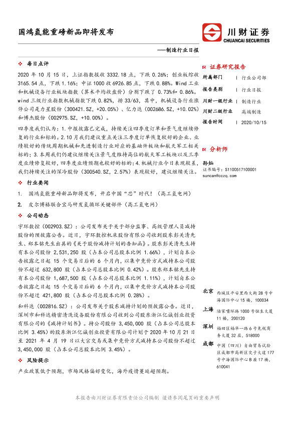 【川财证券】【20201015】制造行业日报:国鸿氢能重磅新品即将发布-2页